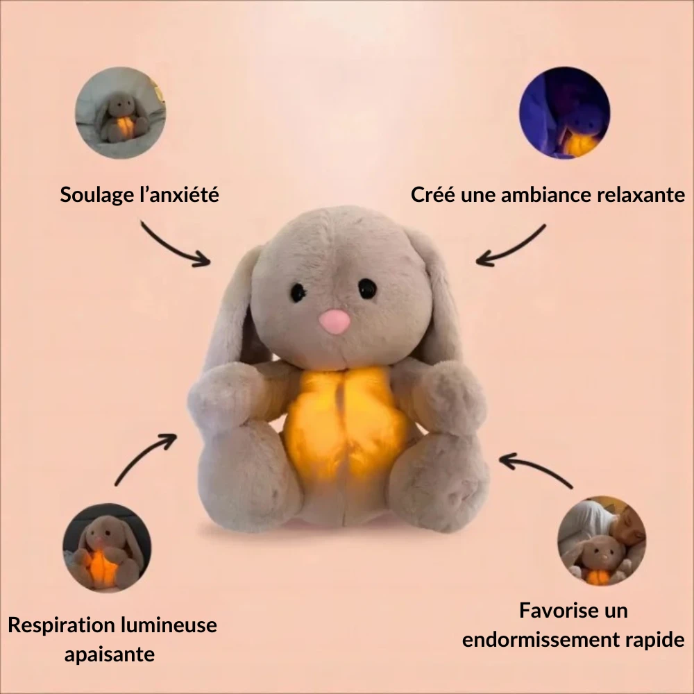 Plongez dans un cocon de douceur avec notre peluche lapin respirante. Bien plus qu’une simple peluche, ce lapin tout doux est conçu pour calmer les esprits agités et faciliter un endormissement paisible, grâce à son ventre qui se soulève doucement au rythme d’une respiration lumineuse.