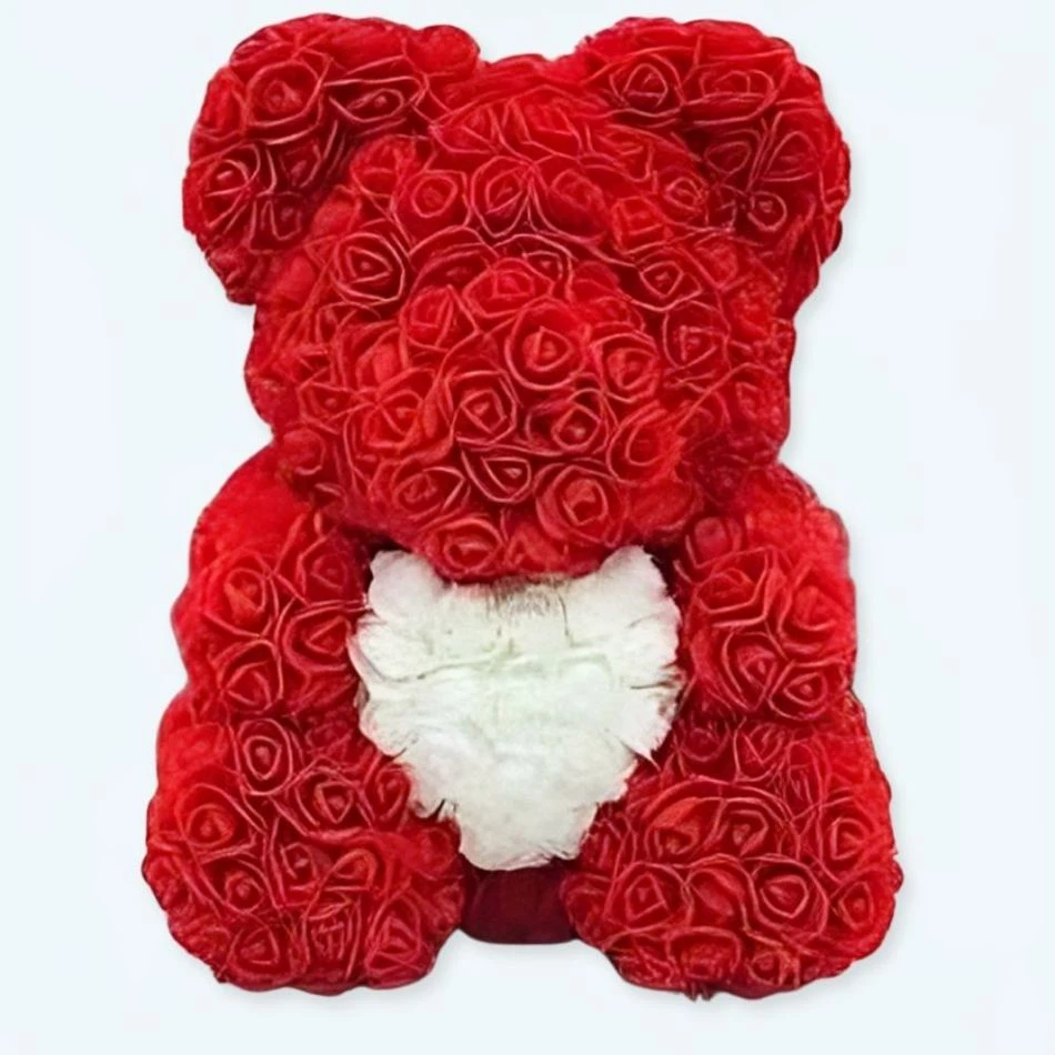 Ce pelucheux coffret collector a été entiÚrement fabriqué à la main avec les meilleurs matériaux. Il est fait de peluche de haute qualité, avec une douceur incroyable et est rempli de ouate de haute qualité. Les oursons sont assis sur des roses rouges.