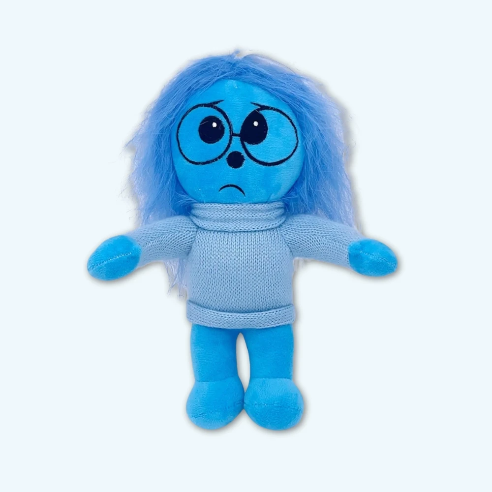 La peluche Tristesse de Vice Versa 2 est là pour vous apporter un peu de réconfort. Avec sa texture douce et sa couleur bleu ciel, elle est parfaite pour les câlins. Son petit pull tricoté et ses lunettes lui donnent un air à la fois mignon et mélancolique.